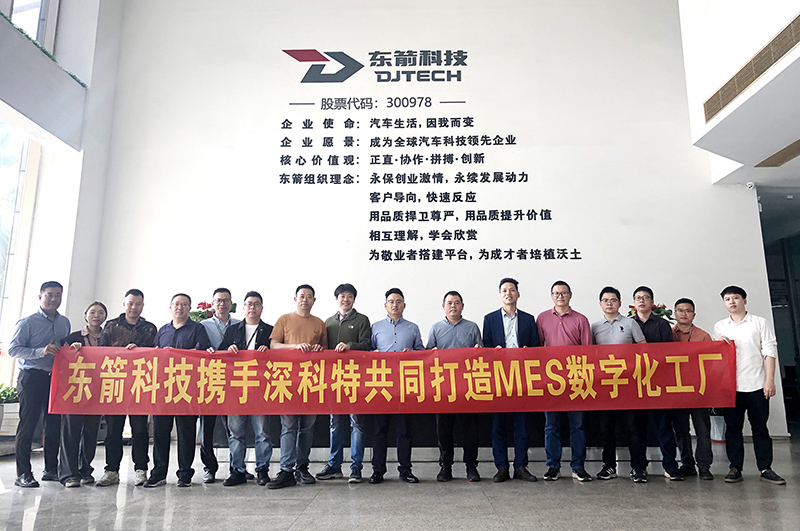 ? ? ? 伴隨著社會經(jīng)濟的發(fā)展,數(shù)字化、智能化成為了當(dāng)下制造業(yè)發(fā)展的一種趨勢。深科特繼東箭智能LEAN MES項目合作之后,2023年2月13日,再度牽手IPO上市公司-廣東東箭汽車科技股份有限公司,雙方項目成員及高管共同見證歷史性的一刻。
